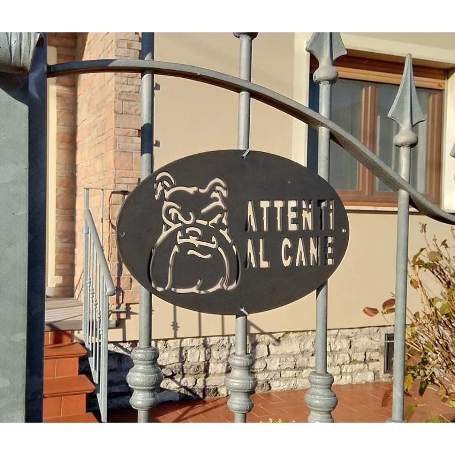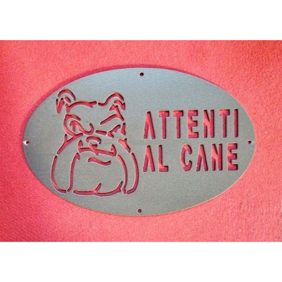 Targhetta / Cartello "ATTENTI AL CANE" in Ferro . Disegno Laser