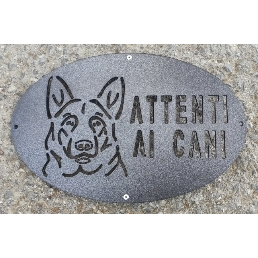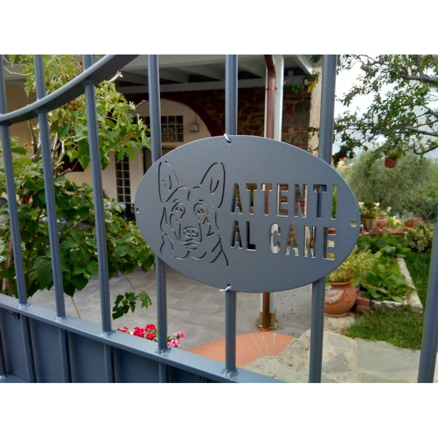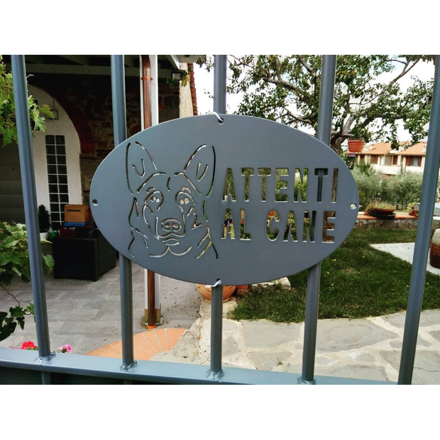 Targhetta / Cartello "ATTENTI AL CANE" in Ferro . Disegno Laser